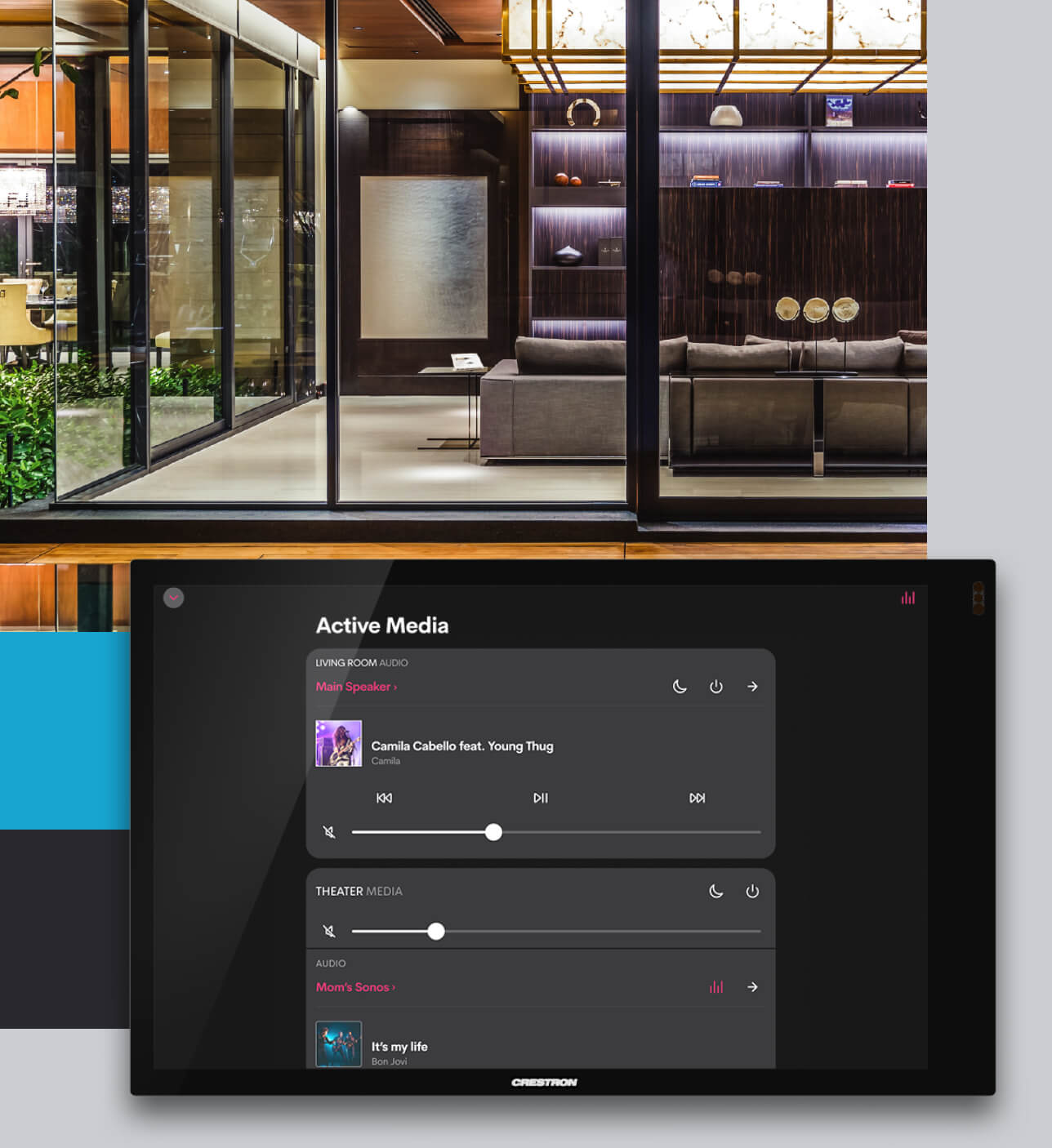 Crestron speakers and amplifiers are precision-engineered for optimal listening experiences in every room and throughout the home. Crestron Home also works with your favorite audio devices.